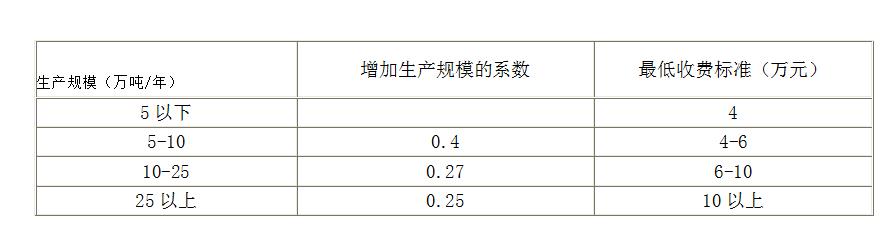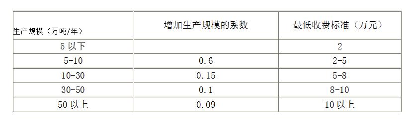 4.生產(chǎn)規(guī)模在區(qū)間內(nèi)的項(xiàng)目評(píng)價(jià)費(fèi)=收費(fèi)標(biāo)準(zhǔn)+(項(xiàng)目的生產(chǎn)規(guī)模-表中相應(yīng)的生產(chǎn)規(guī)模下限)×增加生產(chǎn)規(guī)模的系數(shù)。
