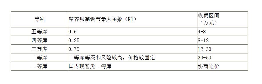 評(píng)價(jià)費(fèi)=對(duì)應(yīng)等別收費(fèi)區(qū)間費(fèi)用×[庫容壩高調(diào)節(jié)系數(shù)(K)+1];