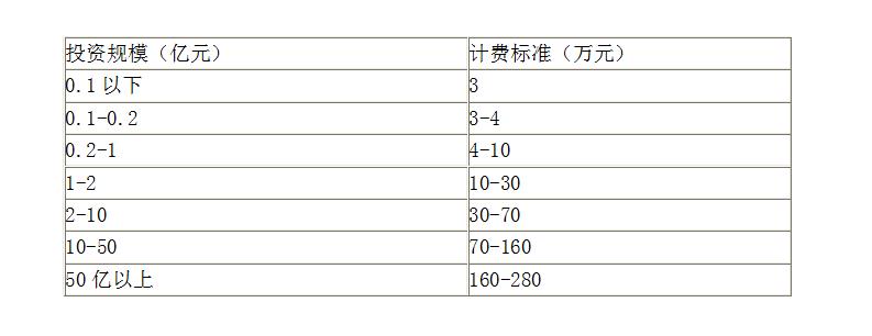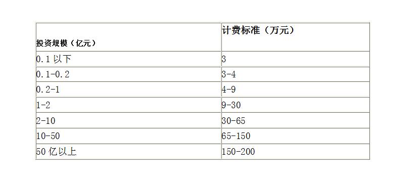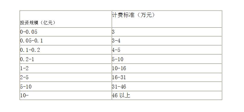注:評(píng)價(jià)費(fèi)用根據(jù)項(xiàng)目的投資額按計(jì)費(fèi)標(biāo)準(zhǔn)采用直線內(nèi)插法計(jì)算。